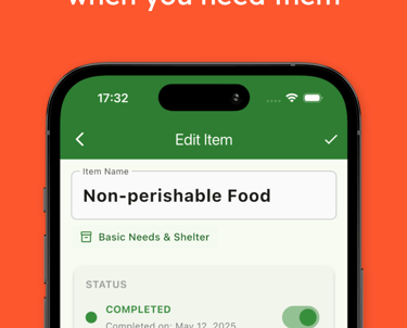 This app is your essential companion for emergency preparedness, helping you organize supplies, track inventory, and stay ready for power outages, natural disasters, and evacuations.