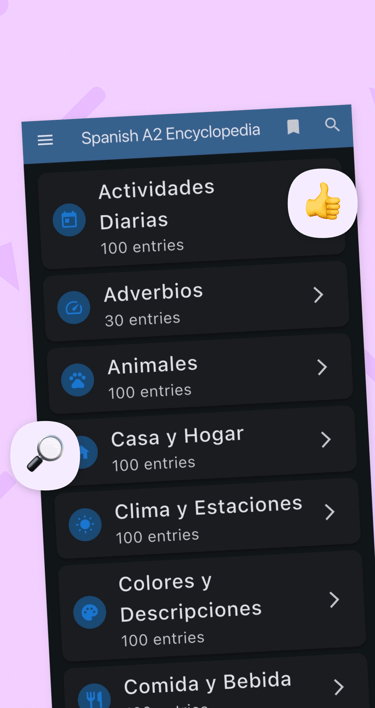 Enciclopedia Espanol A2 is a comprehensive Spanish learning app designed for A2-level learners. With 1,862 carefully curated vocabulary entries, 11 grammar lessons, 30 interactive dialogues, 21 audio comprehension exercises, verb conjugation tools, and engaging gamification features, you'll master Spanish vocabulary and grammar with confidence.